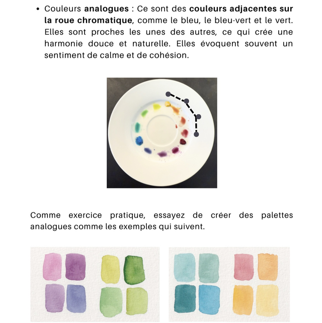 Dans ce guide vous trouverez des éléments théoriques pour comprendre les couleurs, leur classification, comment les harmoniser et des conseils pratiques pour créer une multitude de couleurs à l’aquarelle à partir des 3 couleurs primaires.
